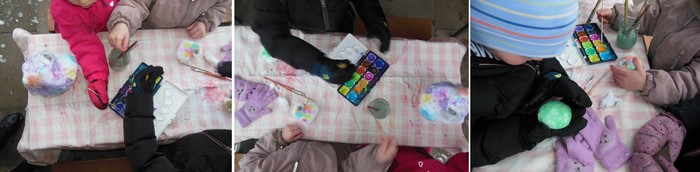 Mit Pinseln, Pipetten und viel Neugier verwandelten die Kinder einfache Schneehaufen in kleine Kunstwerke. Dabei standen nicht das Ergebnis, sondern das Ausprobieren, Staunen und gemeinsame Gestalten im Mittelpunkt. Spielerisch wurden Feinmotorik, Kreativität und Experimentierfreude gefördert.