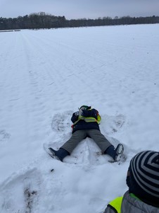 Zwischendurch entdeckten wir Tierspuren im Schnee, hörten das Knirschen unter unseren Schuhen und genossen die ruhige Winterstimmung. Zurück in der Kita griffen wir die Erlebnisse auf – es wurde erzählt, nachgespielt und gemalt.